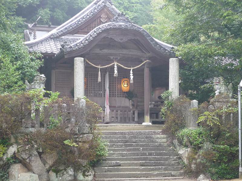 神社は雨で霞んで見えます。