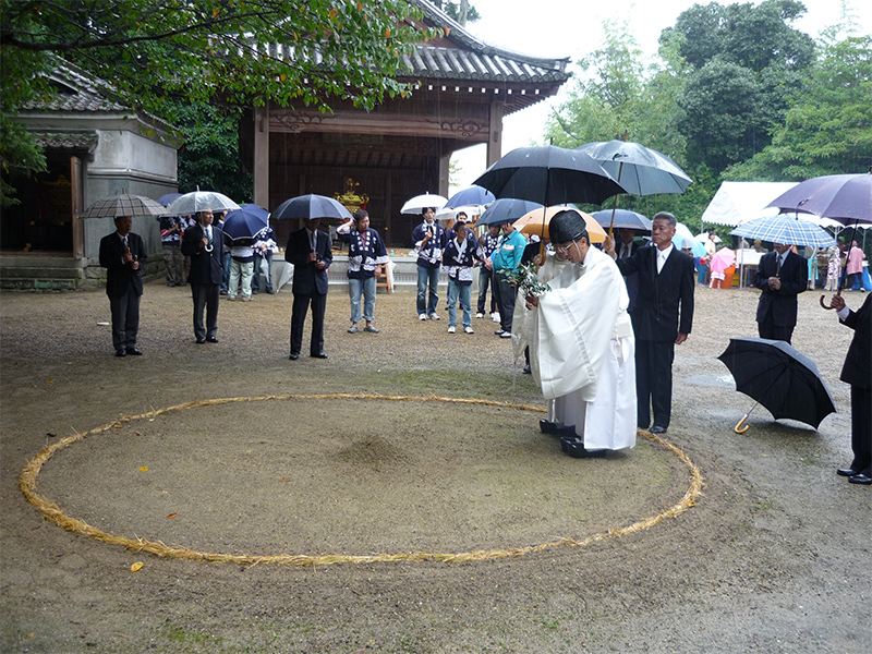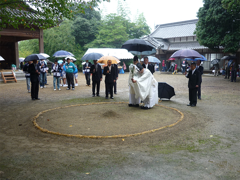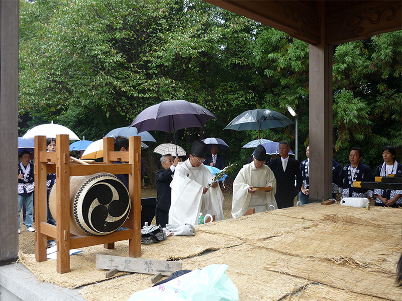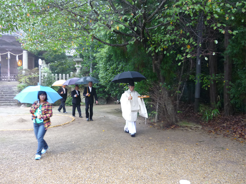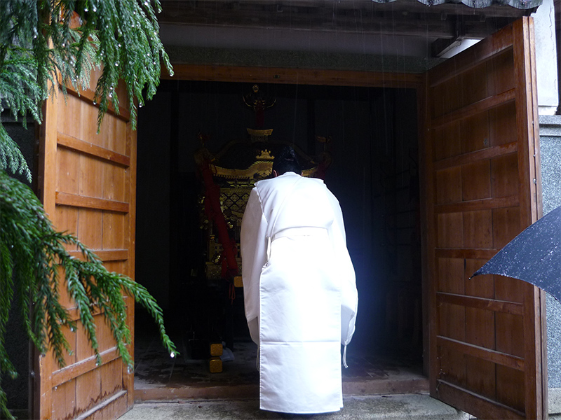 雨中の祝詞奏上。