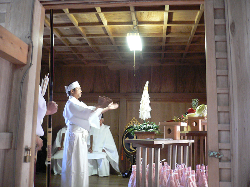 選ばれた弓の射て衆が、今年も凛々しい白装束で登場です!神聖な祭りに、少々緊張気味。