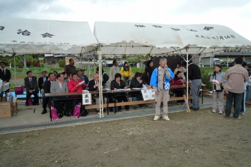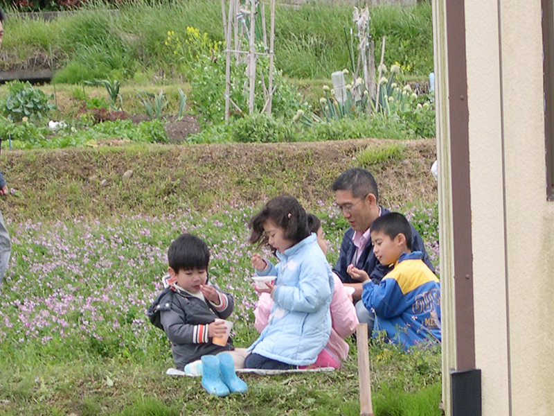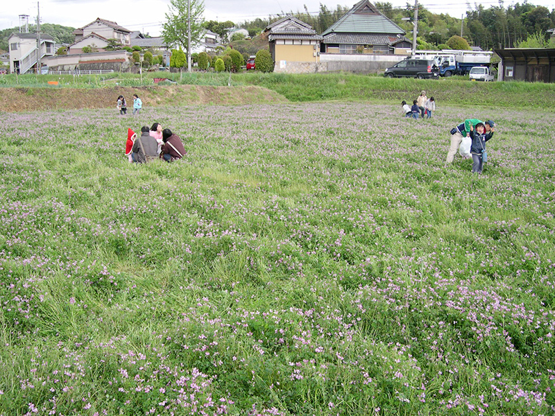 福谷会館前のれんげ祭り会場にて(福谷地区里づくり協議会、西神中央自治連合協議会主催)恒例になりましたれんげ祭も10回を数えるようになりました。