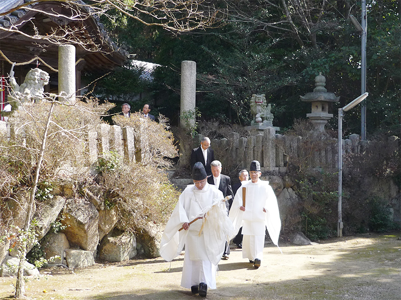 本殿での神事を終え関係者が出てきました。