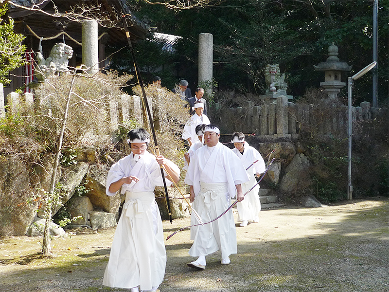 宮司さんを先頭に弓引き場に向かいます。