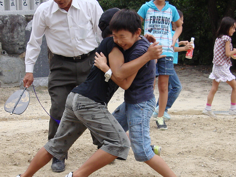 写真:秋葉神社にて 神事に始まり、子供相撲の奉納が行われました。