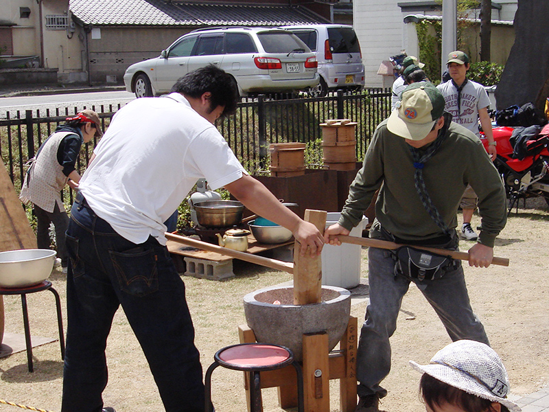 もちを搗くのはボーイスカウトの人たちです
