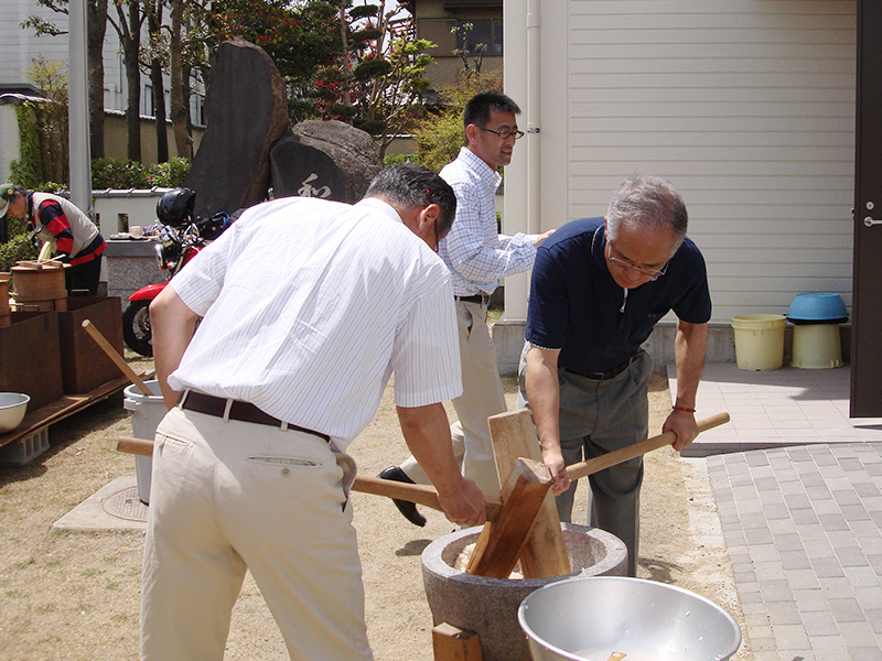 長寿会の人はもちをまるめます