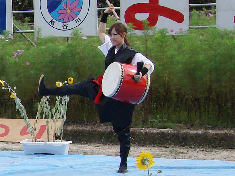 沖縄太鼓、紅一点の笑顔がすてきでした。