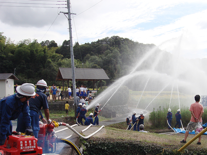 最後は消防団の一斉放水です。