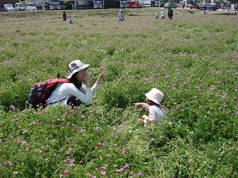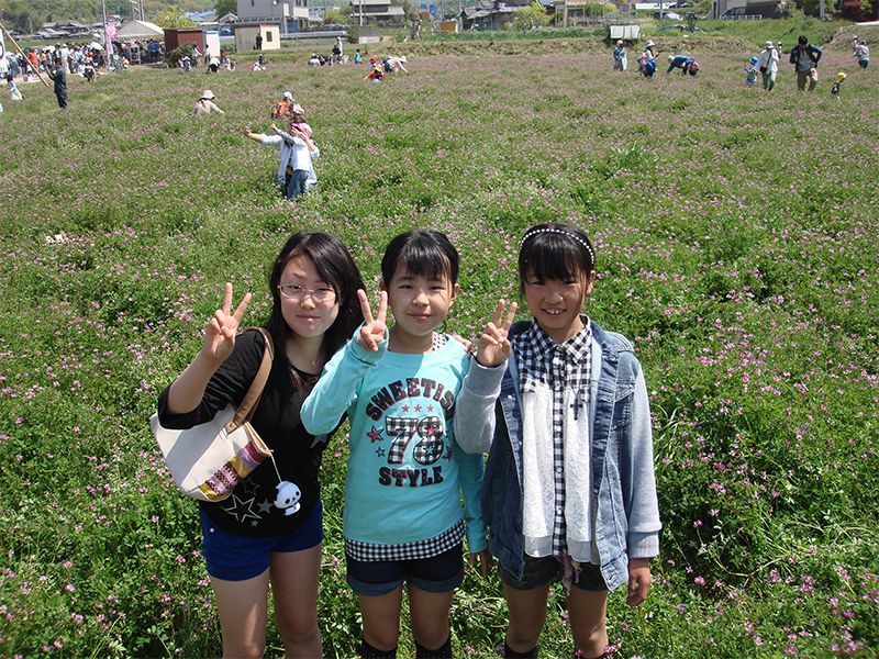 写真:福谷会館横、れんげ畑にて