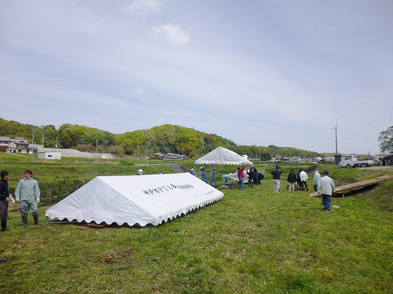 準備は、前日よりはじまります。2017年れんげ祭り、準備開始です。