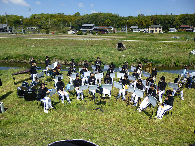 毎年恒例の、櫨谷中学校ブラスバンドの、ステージがありました。演奏準備OK?