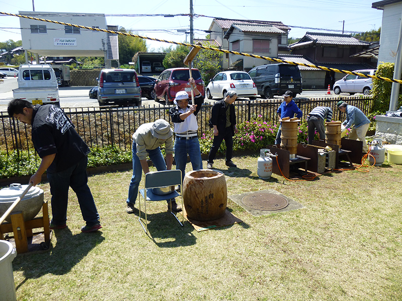 毎年完売のれんげ餅の、餅をついています。頑張って!