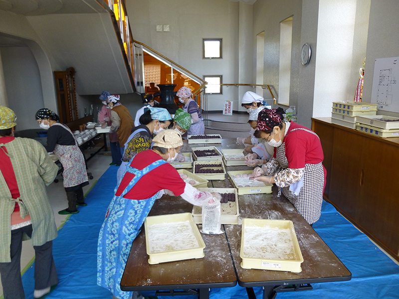れんげ餅を丸めています。おいしそう!