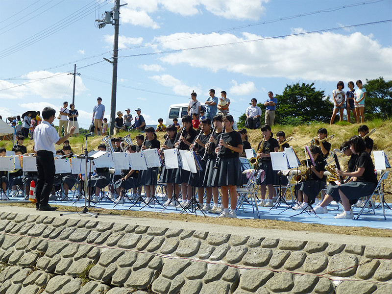 ステージプログラムが始まります。トップバッターは、櫨谷中学校ブラスバンド部です。