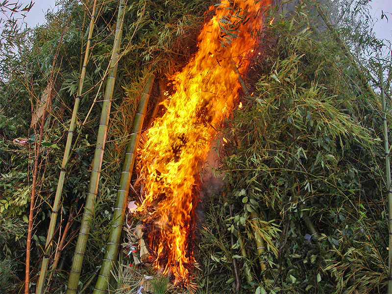 朝から小雨の降るなかでの準備、点火は時間を早め13:00からの開催となりました。