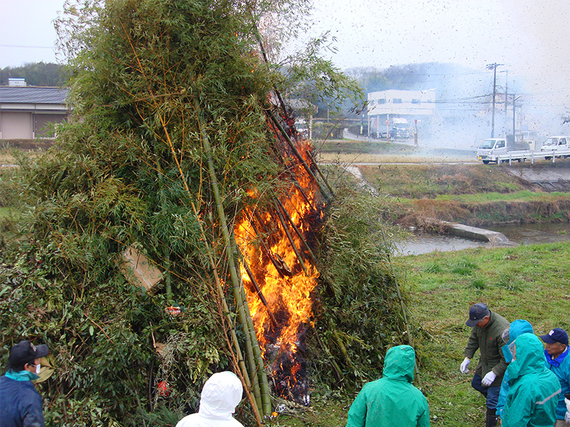 今年最初の行事としてとんど祭りが福谷会館横の河川敷で行われました。