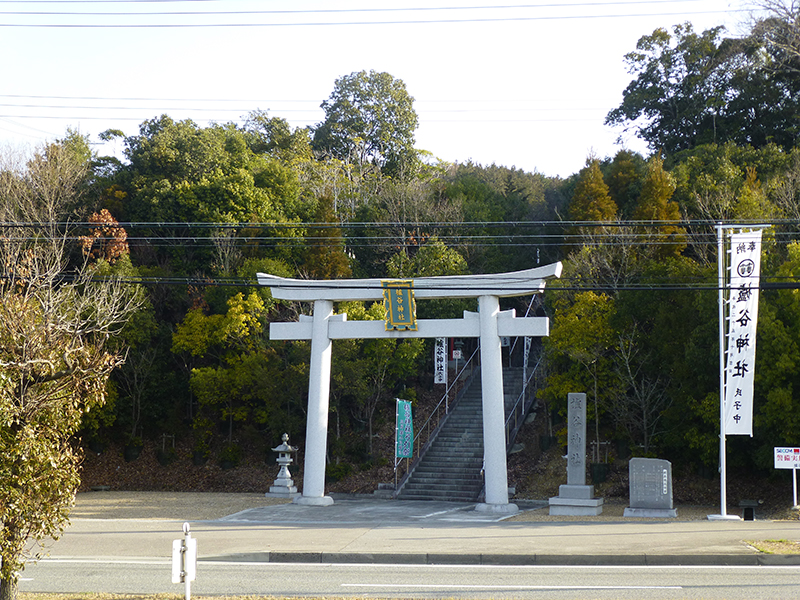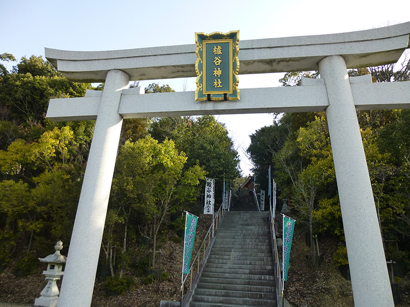 晴天に恵まれた、櫨谷神社の鳥居付近の風景。