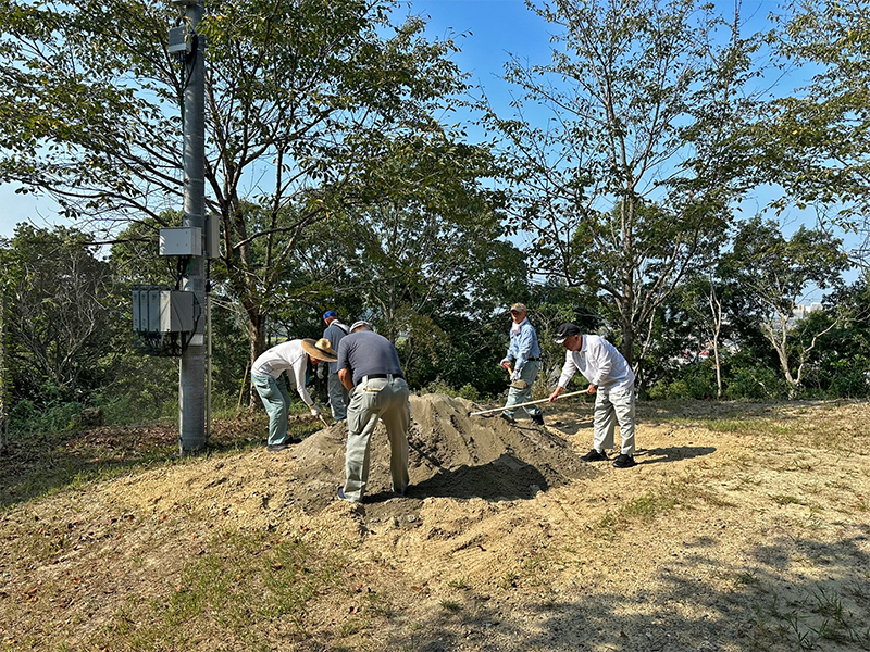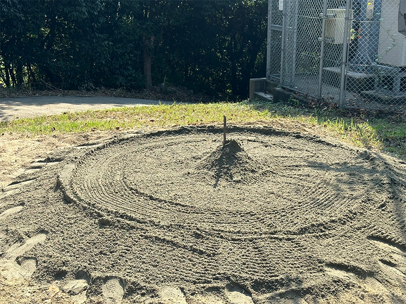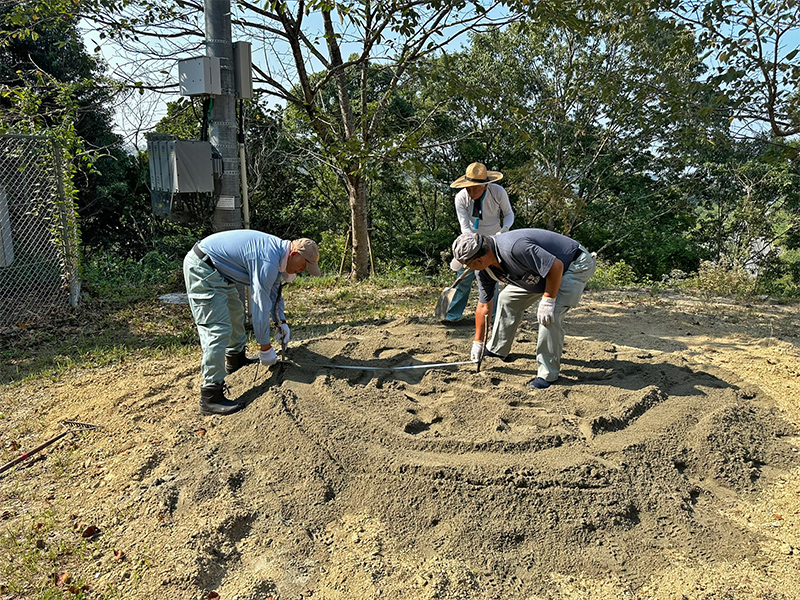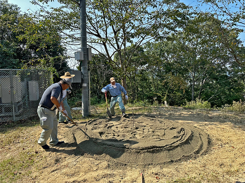清掃作業に引き続き、土俵づくりが始まります。