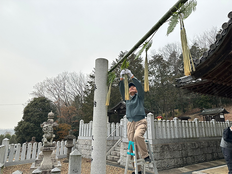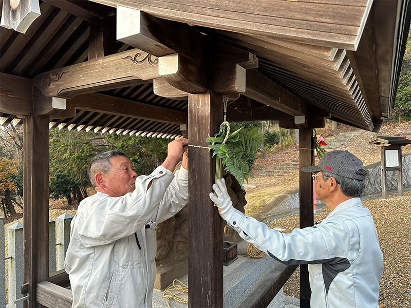 総代全員で、丁寧にお正月飾りを、準備していきます。