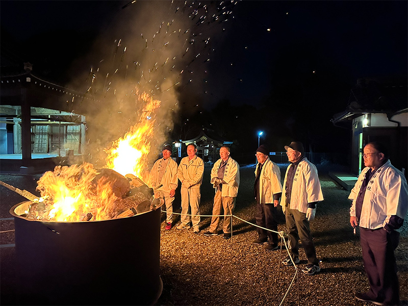 大晦日に、初詣の参拝者様の寒さ対策のための、焚火の準備をします。