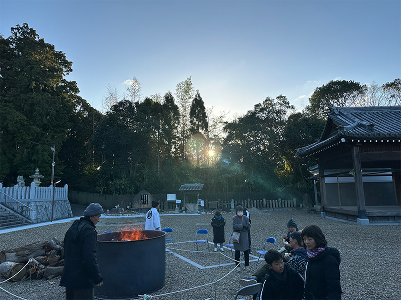 2024年(令和6年)1月1日元旦の夜明け前の櫨谷神社境内の風景。