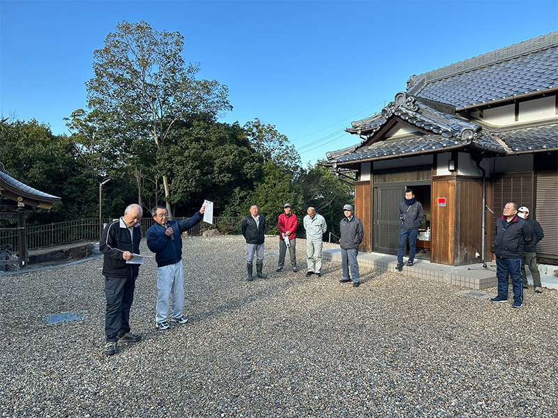 初めに、一連の祭典の準備に先立ち、櫨谷神社代表総代より、訓示があります。安全第一でお願いします!