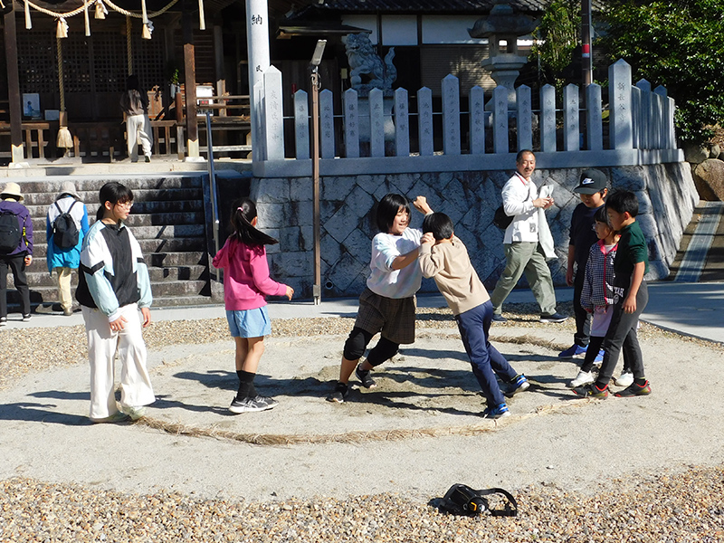 土俵があると,自然とこどもたちは相撲をとりますね。