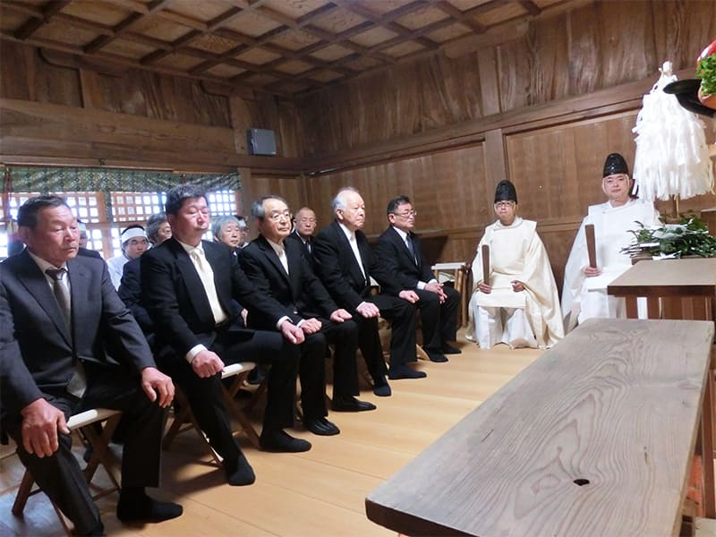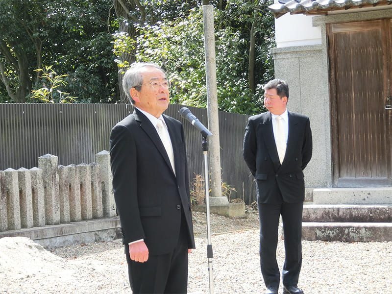 弓引き神事の終了後、代表総代のお礼の言葉です。